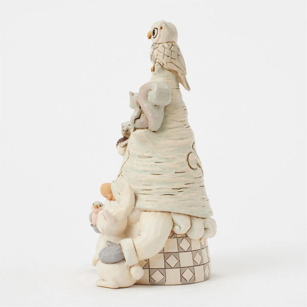 This charming little gnome looks like he just wandered out of a fairytale forest! From Jim Shore’s beloved White Woodland Collection, he’s decked out in cozy winter whites and topped with the most whimsical “hat” — a hollow log that doubles as a snug woodland home. A curious squirrel peeks out from inside, an owl keeps watch from above, and a bunny and bird join the party below.